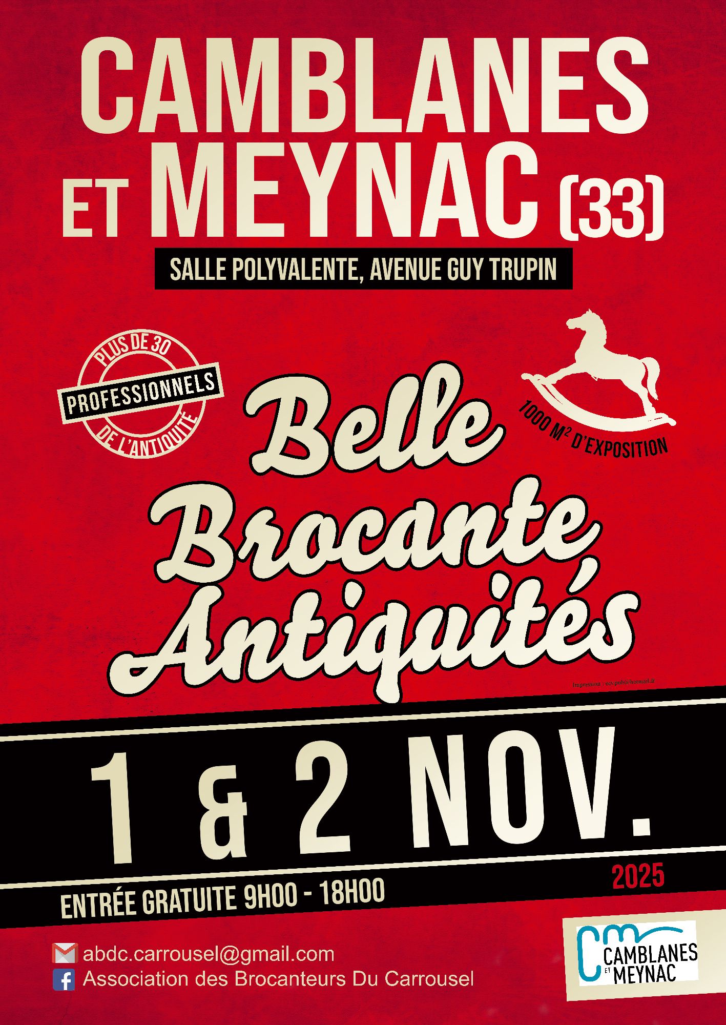 Samedi 1er et dimanche 2 novembre, la BELLE BROCANTE ANTIQUITES est de retour à Camblanes et Meynac (salle polyvalente - avenue Guy Trupin).